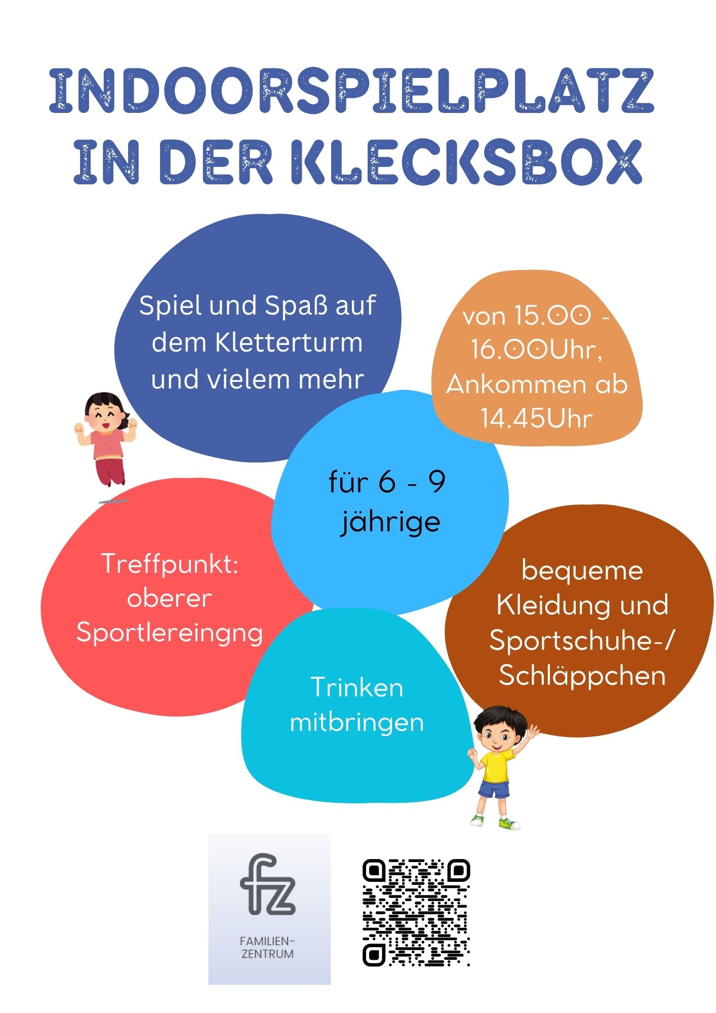 Das Angebot gilt für alle 6-9jährigen. Bitte bequeme Kleidung, Turnschläppchen oder Turnschuhe und etwas zu trinken mitbringen.
