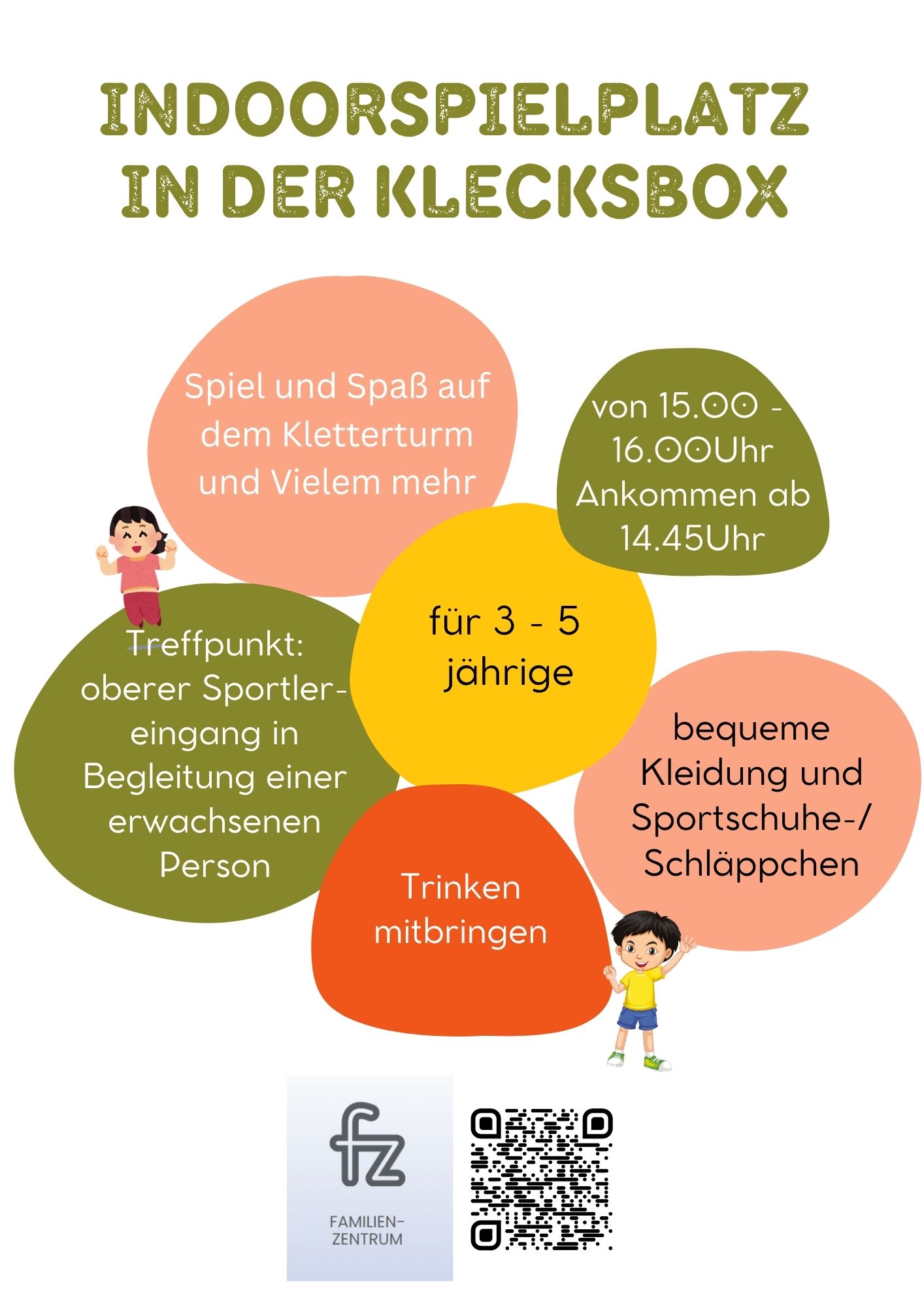 Das Angebot gilt für alle 3-5-jährigen in Begleitung eines Erwachsenen oder einer vertrauten Person, die mindestens 12 Jahre als ist.