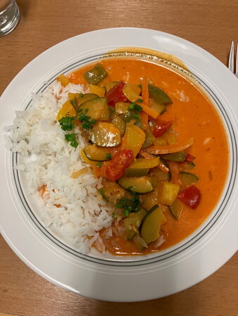 Am Montag, den 27. Oktober hatte die Elternschaft des Elterncafés und das Familienzentrum auf Wunsch der Eltern zum gemeinsamen Kochabend eingeladen. Zur Begrüßung gab es einen (alkoholfreien) Aperitif und dann ging es auch schon ab in die Küche. Dort wurden die Zutaten für die Kürbissuppe, das Thai-Gemüse-Curry, sowie für das Apfel-Vanille Desert kleingeschnitten und vorbereitet. Nach kurzer Zeit roch es schon nach angebratetenem Gemüse und es herrschte ein lebendiges und buntes Treiben in der Landfrauenküche. Um 20.45Uhr waren dann alle Gerichte fertig und die Speisen wurden serviert. Während dem Essen entstanden offene und herzliche Gespräche und um 22.00Uhr gingen alle satt und glücklich nach Hause.