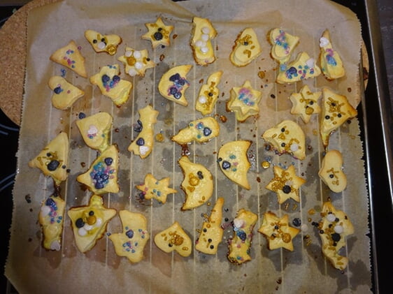 Um den Kindern möglichst vielfältige Angebote zu ermöglichen, darf das Backen von Plätzchen nicht fehlen. Die Kinder rollten Teig aus, stachen Formen aus und verzierten ihre Plätzchen mit viel Begeisterung und Kreativität. Beim Backen werden viele Fähigkeiten gefördert: Die Kinder stärken ihre Feinmotorik beim Ausrollen, Ausstechen und Verzieren, sammeln Alltagswissen und lernen durch zuckerfreie Rezepte alternative Zutaten kennen. Gleichzeitig üben sie ein erstes mathematisches Verständnis, wenn sie beispielsweise Mengen einschätzen. Zudem ist das Backen ein intensives sinnliches Erlebnis – vom Fühlen des Teigs über den Duft in der Küche bis hin zum Probieren der selbst gestalteten Plätzchen. Lecker...