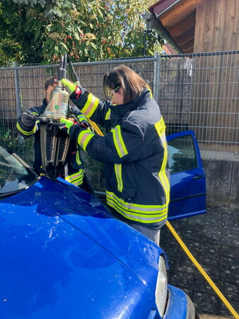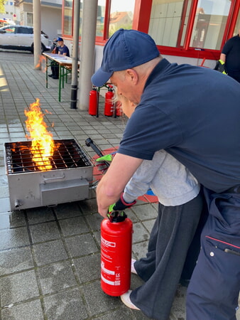 Beim Roten Kreuz konnten beispielsweise Verbände gewickelt werden, es gab einen Rollstuhlparcours und Verschiedenes rund um das Thema Notruf. Bei der Feuerwehr konnten die Kinder selber ein Feuer löschen, es gab Infos zum Thema Rauchmelder, ein Memory und auf dem Parkplatz konnte mit einem Wasserschlauch „Fußball“ gespielt werden. Ein weiteres Highlight war das Anschauen und Präsentieren der Fahrzeuge und auch die Erwachsenen konnten aktiv werden. Der Kommandant Chris Scherb erklärte kurz das Wichtigste zu den Werkzeugen Schere und Spreizer, die danach am bereitgestellten Schrottauto aktiv ausprobiert werden konnten.